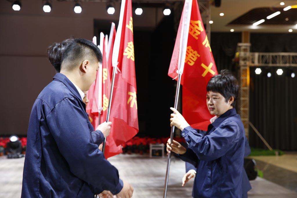 此次训练营共分为12小组,常务副总经理谢保华向训练营分别授营旗和组旗,这十三面责任重大、寓意深远的旗帜,凝聚着班组长求知的决心,凝结着jinnian金年会人奋进的力量。