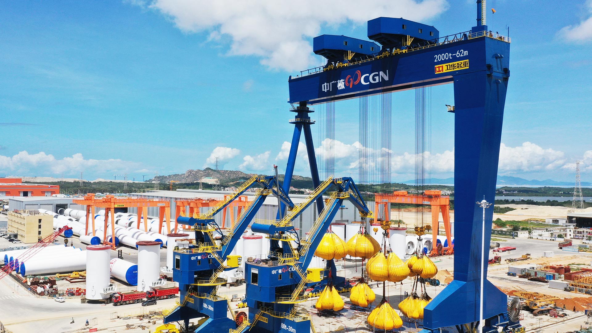 1.起重量达2000t,起升总高度达90m,跨度达62m,解决超大型作业吊装难题。
